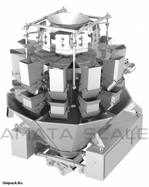 Весовой комбинационный (мультиголовочный) дозатор «AMATA-КАТЕ-210-R» с 2 уровнями по 10 весовых карманов предназначен для точного дозирования сыпучих мелко-, средне- и крупнофракционных продуктов.