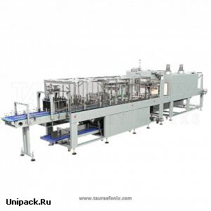 • Термоупаковочная линия для групповой упаковки продукции в термоусадочную пленку высокой производительности (до 25 блоков/мин.). Каждый технологический процесс (формирование блока, упаковка в пленку, термоусадка) осуществляются на отдельных автоматах. Упаковочная линия формируется под потребности конкретного производства - из машин с определенным набором узлов и опций. Возможны варианты упаковывания тары различной формы в плёнку, в пленку с гофроподложкой, в плёнку и трей.