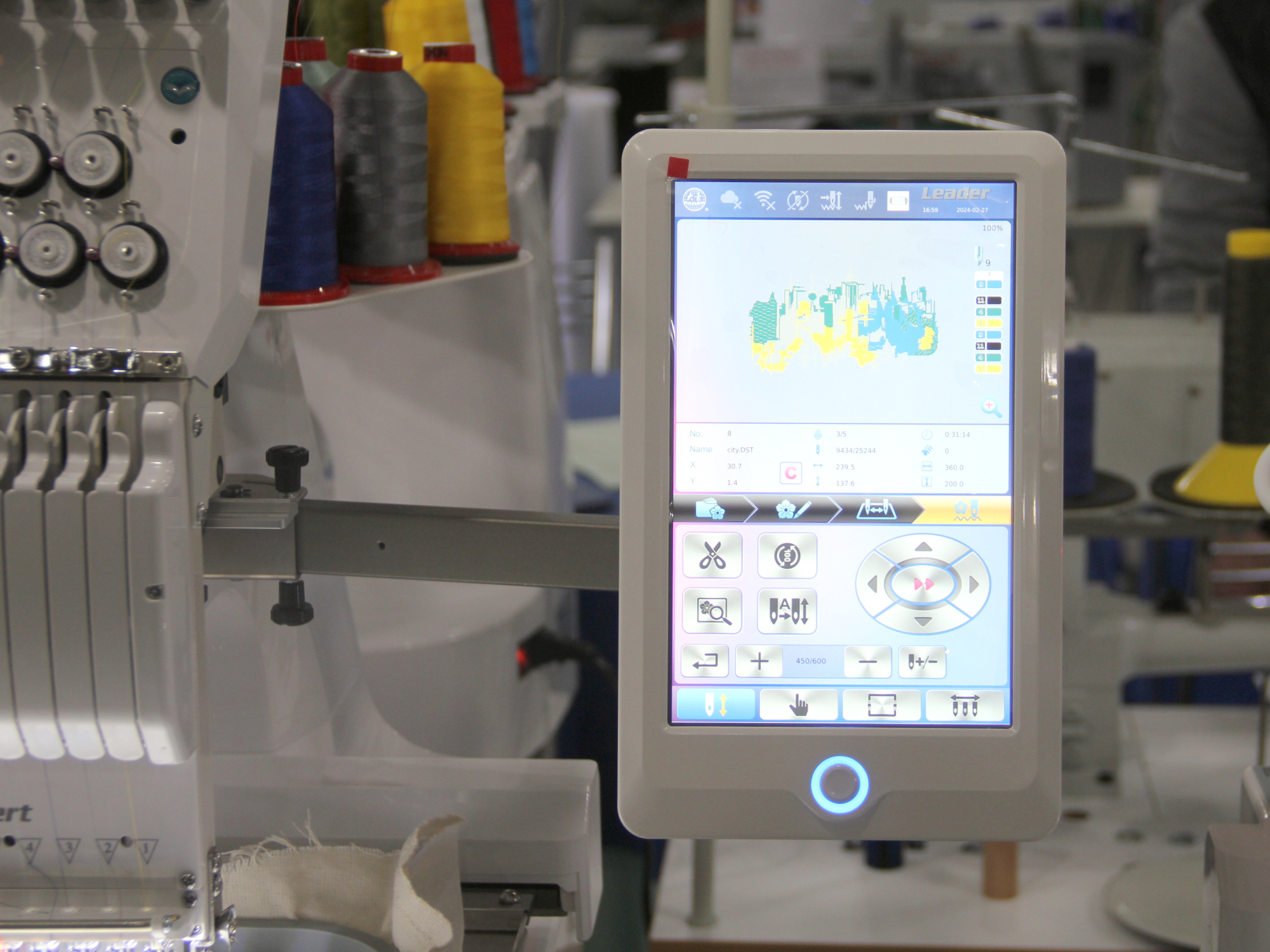 Leader Expert LE-1000 - профессиональная одноголовочная 12-игольная вышивальная машина с удобным и лёгким в управлении, цветным сенсорным ЖК дисплеем, цветным светодиодным датчиком обрыва нити.