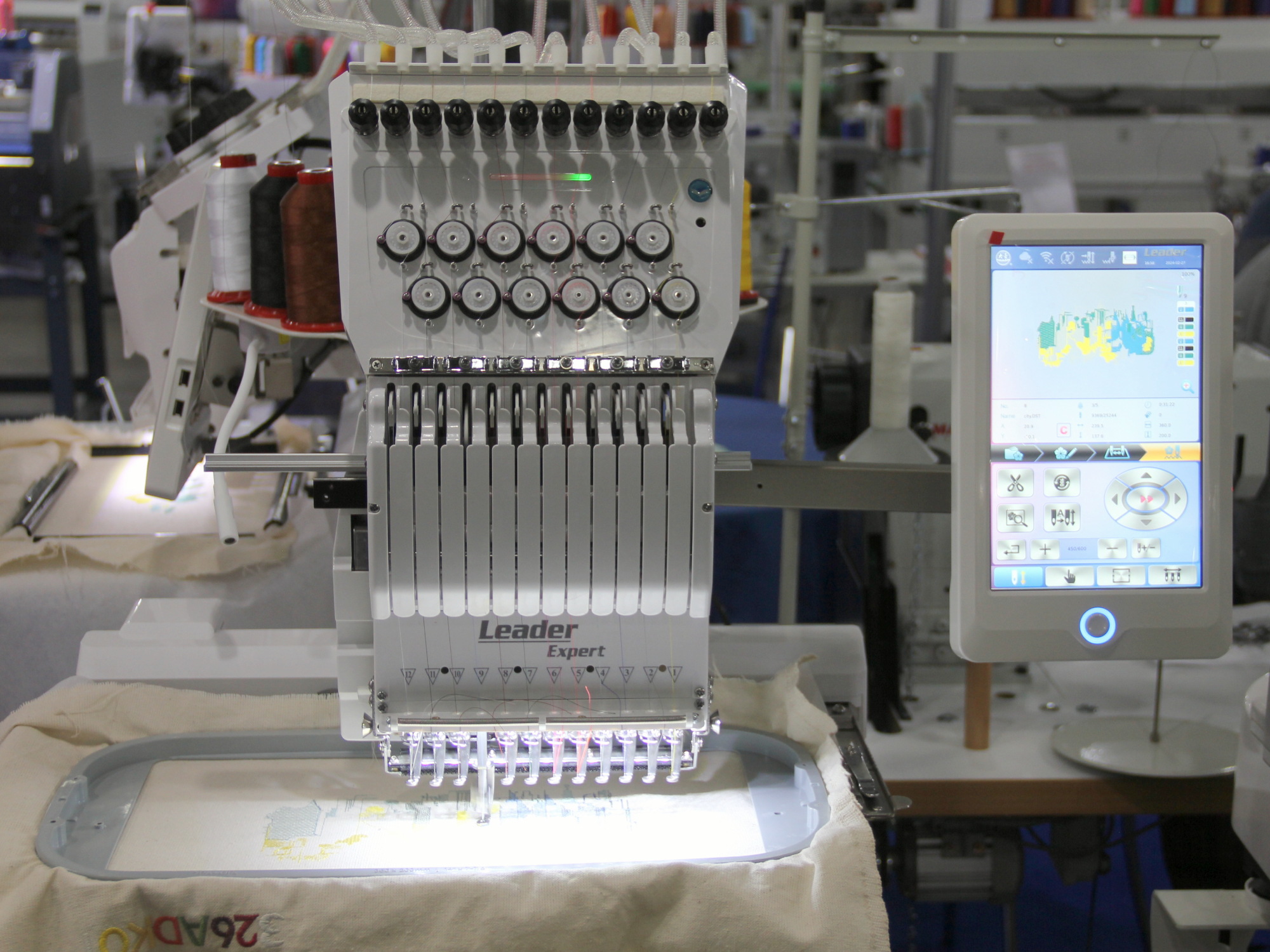 Leader Expert LE-1000 - профессиональная одноголовочная 12-игольная вышивальная машина с удобным и лёгким в управлении, цветным сенсорным ЖК дисплеем, цветным светодиодным датчиком обрыва нити.