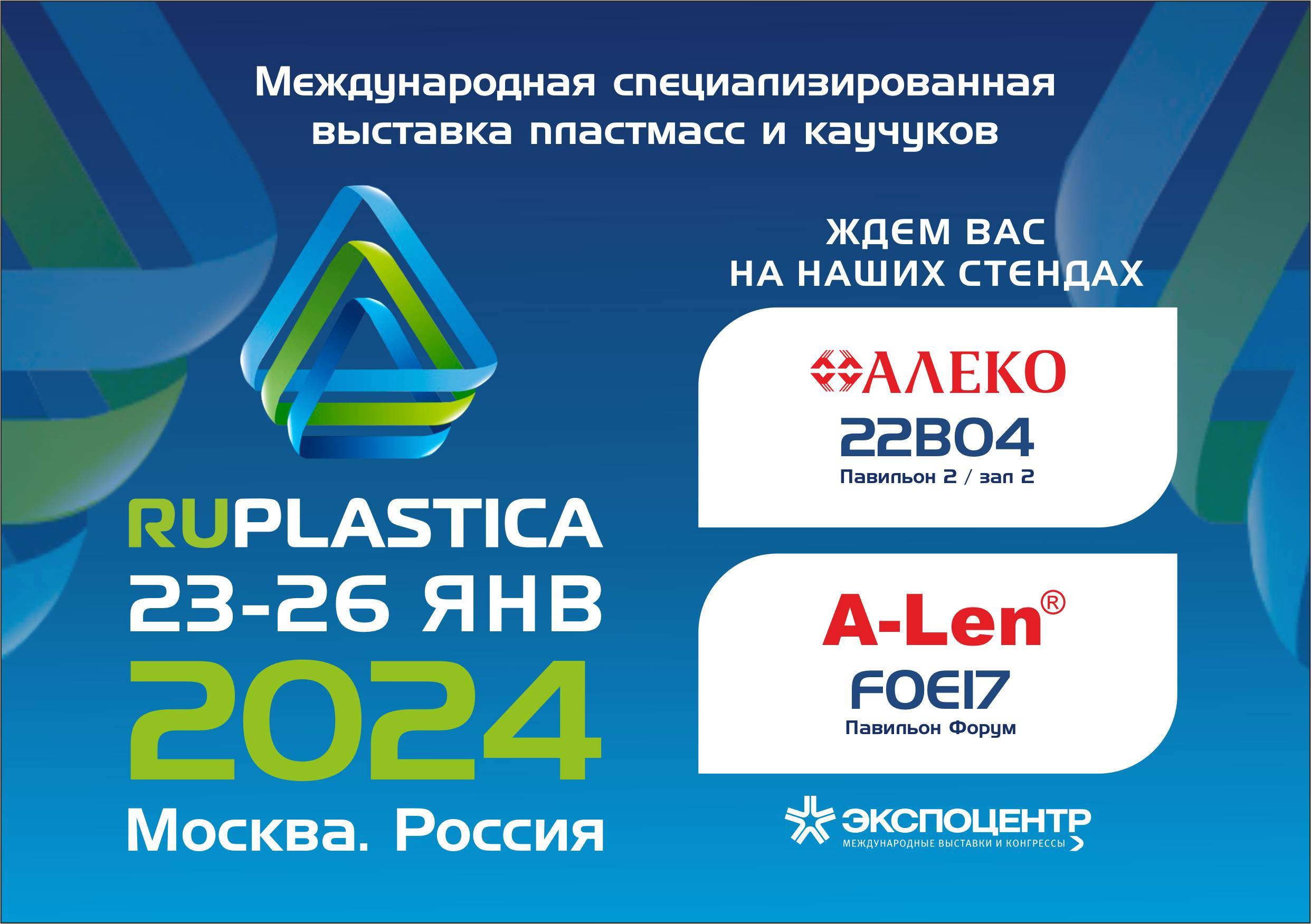 Второй год подряд ГК «Алеко» принимает участие в успешном обновленном проекте RUPLASTICA. Международная специализированная выставка пластмасс и каучуков RUPLASTICA 2024 пройдет в ЦВК «Экспоцентр» (Москва) в период с 23 по 26 января 2024 года.