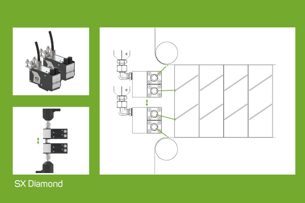 Рекомендуем использовать струйные клеевые головки AX Diamond, SX Diamond и SX 1S Diamond LongLife от компания Robatech. Конкретный выбор необходимой клеевой головки и количества нагнетательных элементов зависит от скорости линии и форматов пружинных блоков.