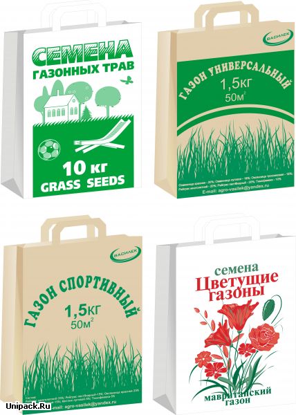 • Бумажные сумки с ручками под СЕМЕНА ТРАВ. Большой ассортимент бумажных сумок с ручками, цвета КРАФТ и с беленой бумагой kraft, различных типоразмеров (ГОСТ 2226-88) c внутренним фальцем.
