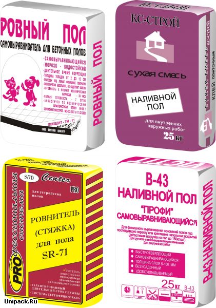 • Закрытые бумажные мешки крафт для фасовки сухой смеси «наливной пол».