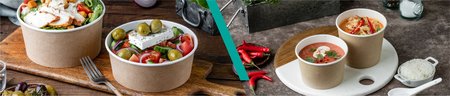 Круглая посуда из перерабатываемого биоразлагаемого картона подойдет для различных видов еды: