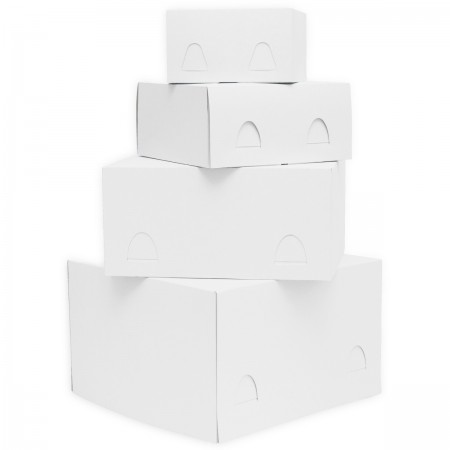 С 8 ноября 2017 года в продажу поступили белые картонные короба «Эконом» (с окном и без) в новом размере. Новинки предназначены для перевозки тортов размерами 300 мм * 300 мм * 450 мм и весом до 10 кг. Вес рассчитан с подложкой толщиной 2,5 мм или 3,2 мм.
