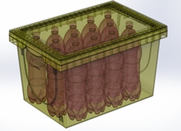 В контейнер помещается 18 штук стандартных 1,5 л. бутылок, высотой 319 мм