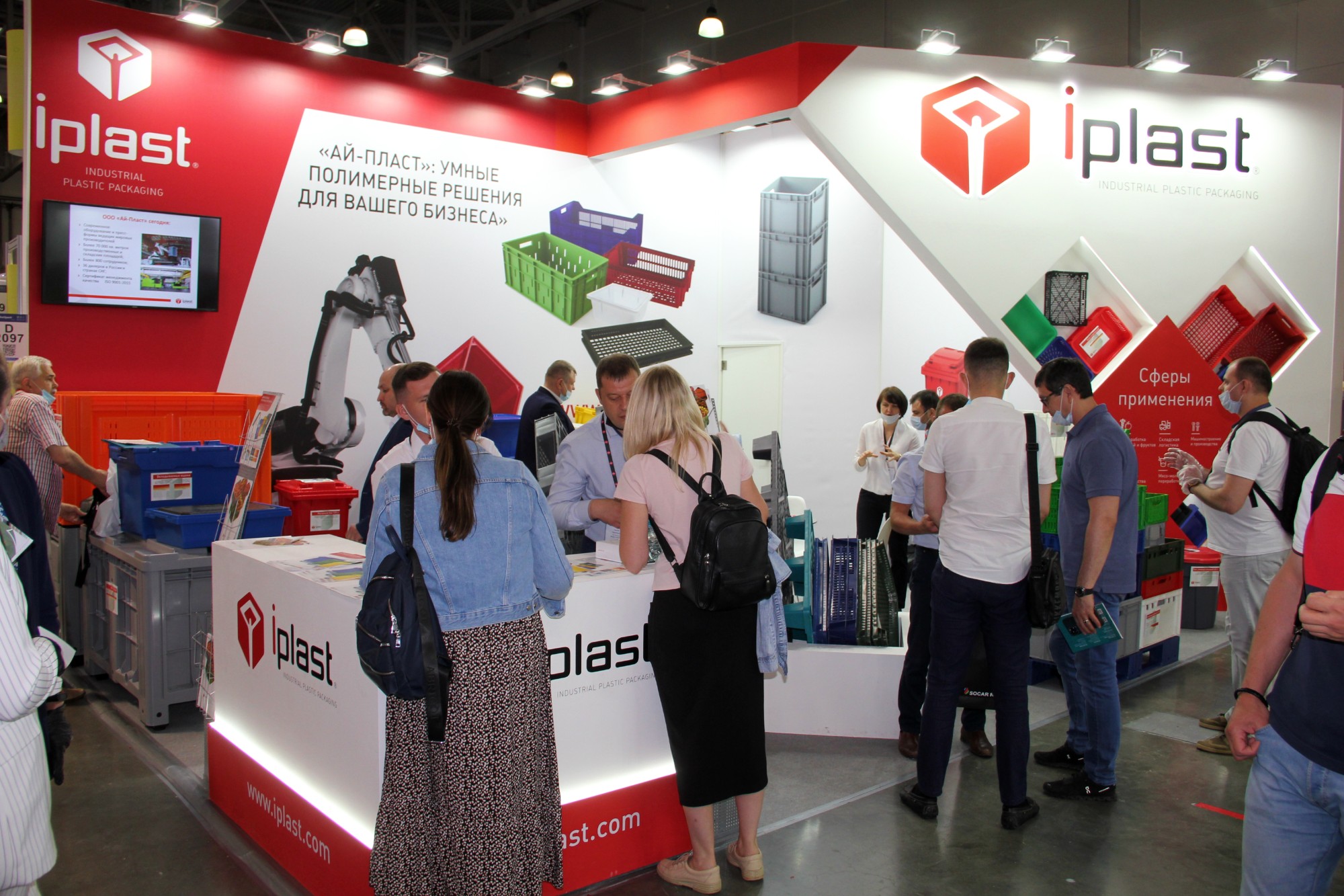 На стенде компании «Ай-Пласт» на выставке RosUpack-2021 была представлена новая продукция – пищевая линейка ящиков, среди которых перфорированные для овощных хозяйств, а также сплошные ящики для хлебобулочных изделий.