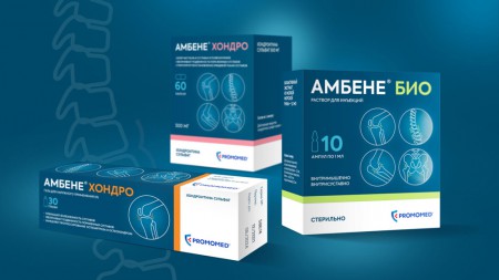 Агентство Wellhead разработало дизайн упаковки для линейки препаратов от болезней суставов компании "Промомед". Препарат Амбене®Био производится по современной технологии биоэкстракции, которая обеспечивает длительный лечебный эффект за короткий курс (всего 10 инъекций – 6 месяцев без боли).