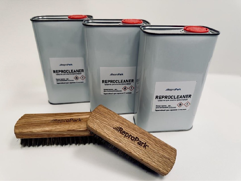 Смывка REPROCLEANER прошла испытания в лаборатории РепроПарка и уже месяц используется перед финальной сушкой на производстве. Она не оставляет химический «ожог» на поверхности полимера, позволяет продлить срок службы флексоформ.