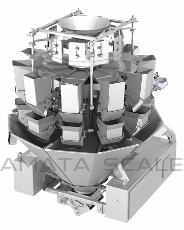 Весовой комбинационный (мультиголовочный) дозатор «AMATA-КАТЕ-210-R» с 2 уровнями по 10 весовых карманов предназначен для точного дозирования сыпучих мелко-, средне- и крупнофракционных продуктов.