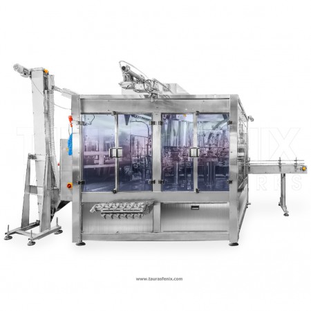 Высокотехнологичная линия позволяет выполнить полный комплекс процессов – на оборудовании осуществляется ополаскивание, розлив продукции и укупоривание тары пластмассовыми крышками с предохранительным кольцом.