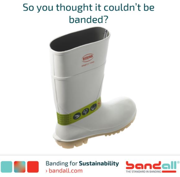 Хорошим примером использования бандерольных лент в качестве этикетки, является использования ее с некоторыми видами обуви, в частности с резиновыми сапогами. Использовать ленту для маркировки обуви сначала может не прийти в голову, однако, это очень простой и удобный способ маркировки, позволяющий выделить продукцию. С помощью предварительно напечатанной ленты, включающей ваш бренд и всю необходимую информацию о товаре, обувь легко маркируется с помощью оборудования Bandall. Без использования клея и стикерных этикеток. Обувь остается чистой и аккуратной.