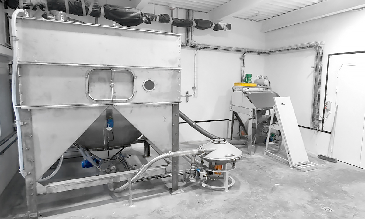 Оборудование включает в себя комплекс по бестарному хранению муки и трассы по ее транспортированию: