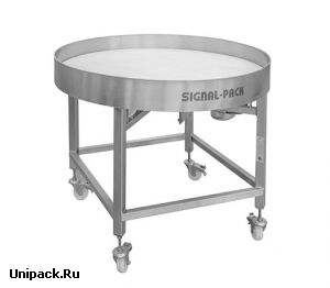 Поворотный стол-накопитель предназначен для накапливания готовых пакетов с продуктом для последующей упаковки их в крупную тару.