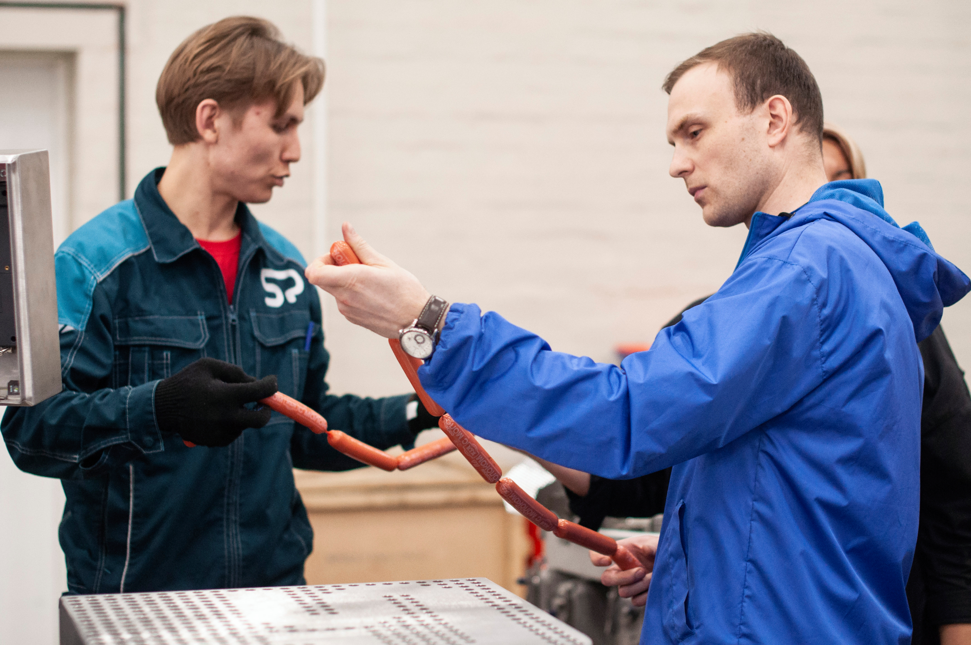 На производственной площадке СИГНАЛ-ПАК прошел показ новой модели делителя сосисочных гирлянд. Разработчики рассказали об отличительных особенностях новой машины, инженеры-наладчики продемонстрировали оборудование в работе.