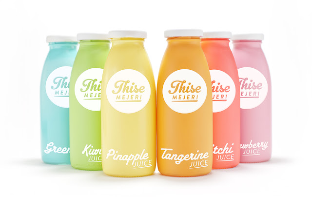 Студентка из Дании Randi Sjælland Jensen разработала концепцию дизайна упаковки сока Thise Mejeri. Согласно заданию Randi необходимо было провести редизайн Thise Mejeri - датской компании по производству молочных продуктов. Randi разработала логотип, упаковку одного из продуктов и систему айдентики, куда вошли визитные карточки, каталог продукции и дизайн страниц сайта. Вдохновленная круглыми формами и винтажной упаковкой молока 1960-70-х, Randi создала яркий ретро бренд на современный манер.