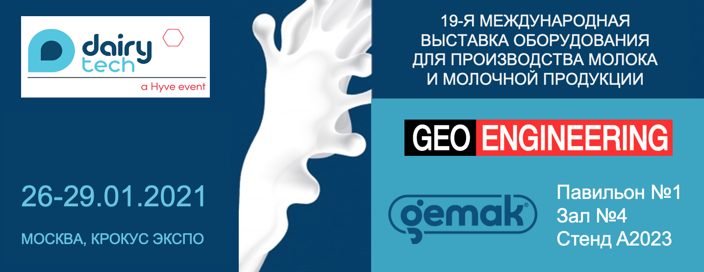 GEO-ENGINEERING вместе со своим турецким партнером компанией GEMAK примет участие в международной выставке оборудования для производства молока и молочной продукции DairyTech-2021, которая пройдет 26-29 января 2021 в МВЦ «Крокус Экспо».