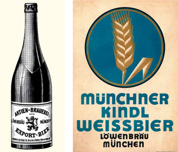 Бутылка для экспорта 1910 г. и плакат 1930г.В 1927 году впервые было сварено светлое пиво. Уже годом позже производство впервые смогло достичь объёма более чем одного млн. гектолитров пива в год. Еврейская семья Шюлайн, которой принадлежало большинство пивоварен, в 1936 году вынуждена была бежать от национал-социалистического преследования в США. В 1942 году произошло переименование пивоварни в "Löwenbräu".