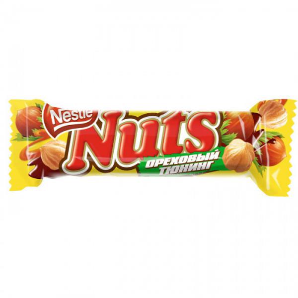 Nuts — это батончик с цельными лесными орехами (в том числе и фундуком), карамелью и нугой. Только Nuts содержит цельные орехи — это единственный батончик на российском рынке, отличающийся этим качеством.