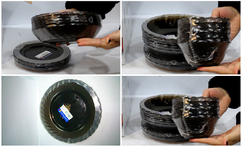 Термоупаковочная линия упаковывает в автоматическом режиме цилиндрические формы стопок столовой посуды из стекла в термоусадочный полиэтилен по всему периметру. При таком способе упаковки термоусадочная плёнка плотно фиксирует продукцию, защищает края изделия, а низ и верх упакованной стопки остаются открыты, что даёт преимущество при продаже, складировании и транспортировки продукции.