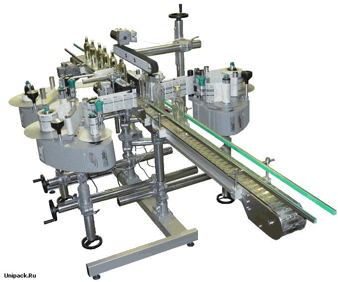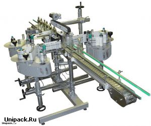 Машина является универсальной, что позволяет на одной машине наносить этикетку на тару от 10 мл до 2л. Этикетировочная машина может дополнительно комплектоваться подающим и приемным столом, конвейером и делителем тары.