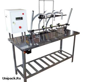 Дозатор выполнен в виде нержавеющего стола. На столе смонтирован блок управления, насос, датчики уровня и разливочные патрубки с отсечными клапанами. Дозатор является универсальной установкой, позволяющей наполнять любую тару густыми и жидкими продуктами. В зависимости от продукта дозатор может комплектоваться различными типами подающих насосов и клапанов. Для увеличения производительности мы можем изготовить дозатор под заказ с тремя или четырьмя разливочными патрубками.