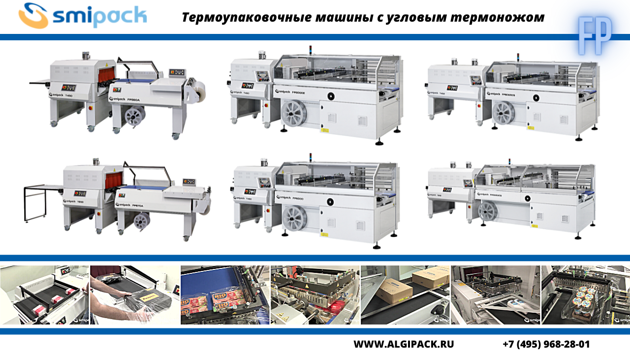 В предыдущей статье мы рассказали Вам о бюджетных термоупаковочных машинах Smipack серий SL и S. Для решения более серьезных упаковочных задач в ассортименте компании Smipack есть линейки оборудования с более развитыми техническими и потребительскими характеристиками. Сегодня мы расскажем Вам о серии термоупаковочных машин с угловыми термоножами Smipack FP. Все эти машины Вы можете приобрести в компании Алджипак.