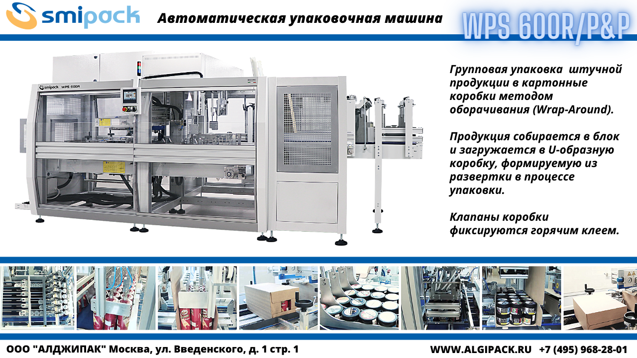 Представляем Вам автоматическую машину для групповой упаковки продукции в картонные коробки Smipack модели WPS 600R/P&P.