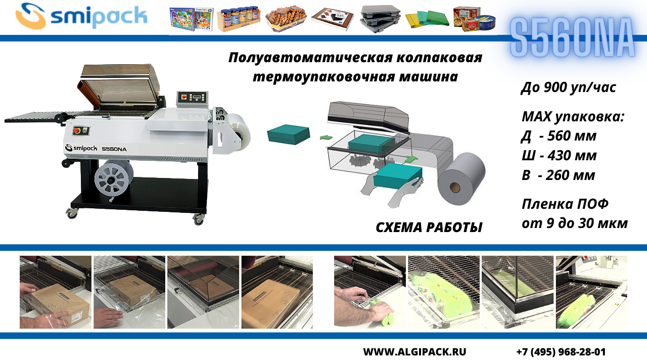 В большинстве направлений коммерческой деятельности сегодня растет потребность в простых, быстрых и малозатратных решениях для продажной, защитной, транспортной или рекламной упаковки. Универсальные бюджетные упаковочные аппараты Smipack серии S — это оптимальное решение для начинающих предприятий или компаний, имеющих небольшой объем упаковки и широкий ассортимент подлежащей упаковке продукции. В этой статье мы познакомим Вас с моделью S560NA, абсолютным лидером в линейке колпаковых машин Smipack.