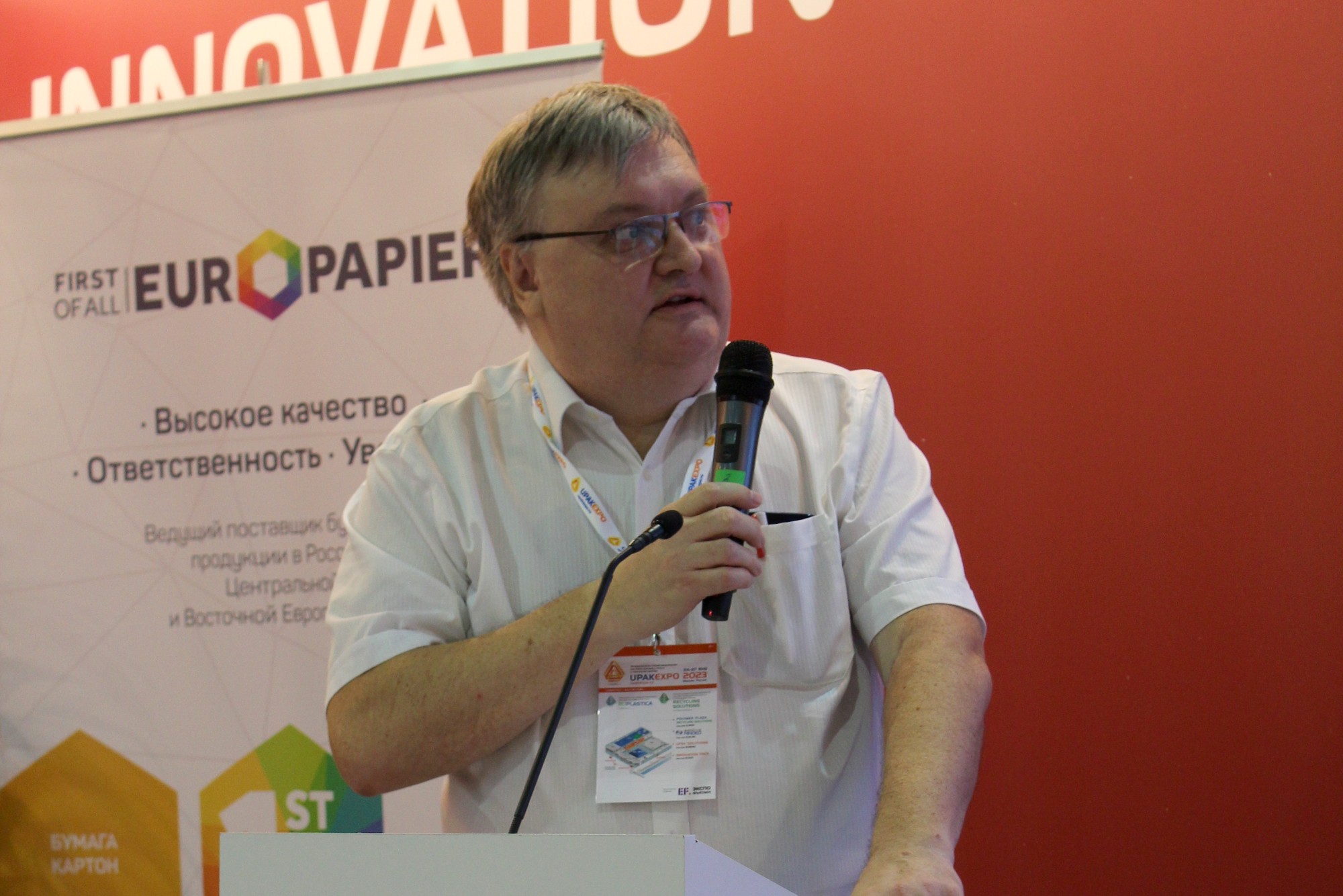Выступление Михаила носило интригующее название: «Все говорят: “Деньги в упаковке”. Где конкретно?». Не секрет, что локомотивом развития современной полиграфии является индустрия упаковки. Михаил Кувшинов сделал обзор упаковки, которая связана с печатью – цифровой или аналоговой. К печатной упаковке относятся этикетка, термоусадочная этикетка, гибкая упаковка, упаковка из картона и гофрокартона. Докладчик сравнил эти виды упаковки по ряду параметров, таких как потребность, технологии в мире, технологии в России в 2023 г., расходные материалы, конкуренция, оптимальный тираж.