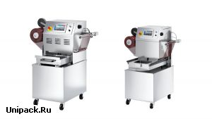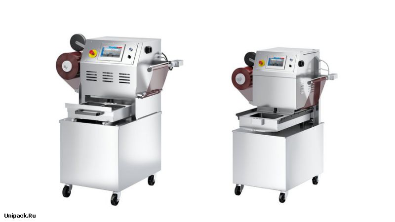 Подходит для небольших производственных мощностей для упаковки в вакууме, модифицированной атмосфере (MAP) или в кожуре с предварительно изготовленными лотками.
