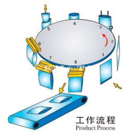 Машина оборудована 8 рабочими станциями. На каждой станции производятся определенные операции.