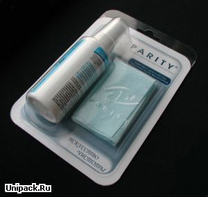 Блистерная упаковка изготовлена для очистителя мониторов и экранов телевизоров. Отличительной чертой пресс-формы данной упаковки является отсутствие прямых углов, что хорошо сочетается с округлой формой флакона. На лицевой стороне отформован логотип компании.