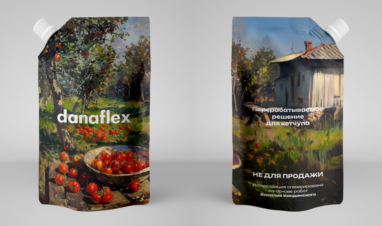 Кейс представлял коллаборацию Danaflex с компанией «Здрава» и было наглядно продемонстрировано, что перерабатываемое решение отлично работает на текущих фасовочных линиях без дополнительных инвестиций. Также, стоит отметить, что все дизайны для перерабатываемого решения для кетчупа выполнены с помощью нейросети и в стилистике известных российских художников концепции «Люди. Искусство. Инновации».