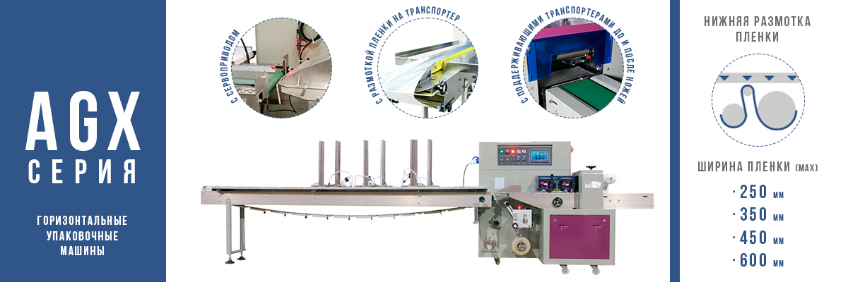 Компания МАГИКОН представляет горизонтальные упаковочные машины с нижней подачей пленки серии: MAGIKON-AGX под использование пленочных материалов с максимальной шириной до 600 мм.