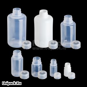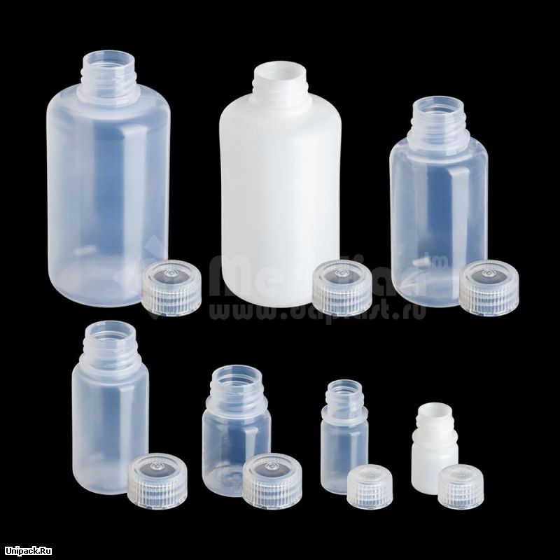Фармацевтический герметичный флакон из полипропилена для биохимических исследований Сим. Представлен в серии флаконов Сим 5, 15, 30, 60, 125, 240 и 250 мл. Флаконы обладают механической прочностью, стойкостью к ударам, деформации и пассивностью к активным химическим веществам.
