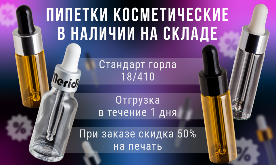 В акции представлены готовые комплекты упаковки, а также флаконы, банки, распылители, дозаторы, пипетки, колпачки и крышки. Это отличная возможность пополнить запасы качественной тары для вашего бизнеса по выгодным ценам.