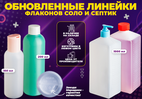 Познакомьтесь с новинками! Свяжитесь с нами прямо сейчас и получите бесплатные образцы флаконов с комплектующими. Убедитесь в качестве нашей продукции.