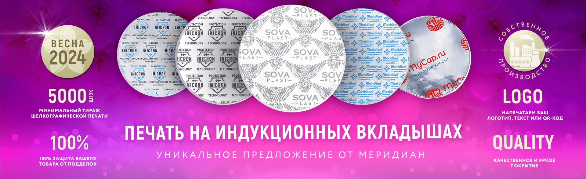 Компания «Меридиан», российский лидер по производству индукционных, клеевых и уплотнительных вкладышей, с 2005 года предоставляет качественные решения для упаковки товаров. Наша продукция помогает защитить содержимое упаковки и обеспечить герметичность продукции различных отраслей, от пищевой до фармацевтической.
